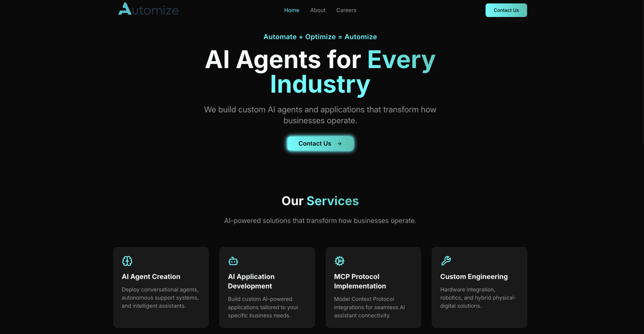 Automize is an AI automation consultancy that helps small and mid-sized businesses save time, reduce costs, and accelerate growth through custom-built automation tools. From AI Agents to document processing and intelligent workflows, we deliver fast, effective solutions that drive real results. We've worked with multiple customers across industries to turn manual processes into smart, scalable systems.